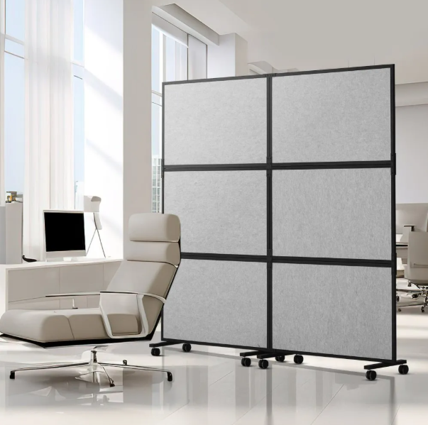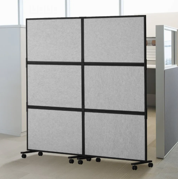 Cloison de séparation acoustique 36,5" de large x 67" de haut pour bureau. Cloison de séparation de bureau, cloison de séparation de bureau en polyester PET couleur GRIS sur roues avec freins (lock). Cloison de séparation avec cadre en acier léger. Cloison de cabine réduisant le bruit et les distractions visuelles. Vendu à l'unité.
