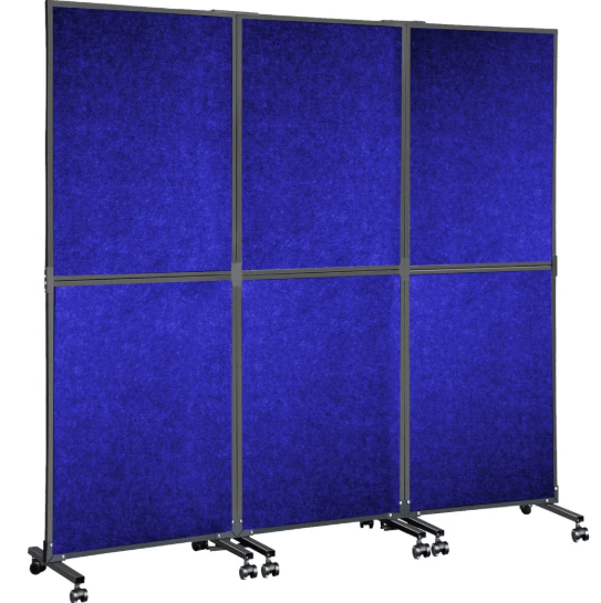 Cloison de séparation acoustique 24" de large x 66" de haut pour bureau. Cloison de séparation de bureau, cloison de séparation de bureau couleur BLEU sur roues avec freins (lock). Cloison de séparation en polyester et acier. Cloison de cabine réduisant le bruit et les distractions visuelles. Vendu à l'unité.