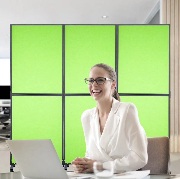 Cloison séparateur bureau polyester et acier VERT sur roues