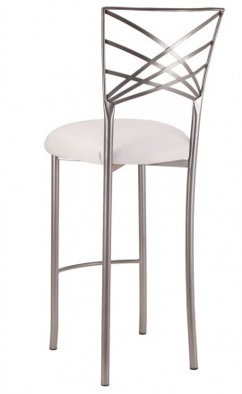 Les chaises de bar «Stool» Chameleon modèle Fanfare sont les plus haut de gamme des modèles de chaises disponible en location pour votre événement. Leur épais coussin de 5'' vous assure un comfort inégalé. Rien à voir avec les coussins 1'' ou 2'' des chaises Chiavari classiques. Ici le modèle avec armature de couleur argent avec coussin agencé BLANC également inclus. Autres couleurs de coussins et armatures disponibles sur demande.