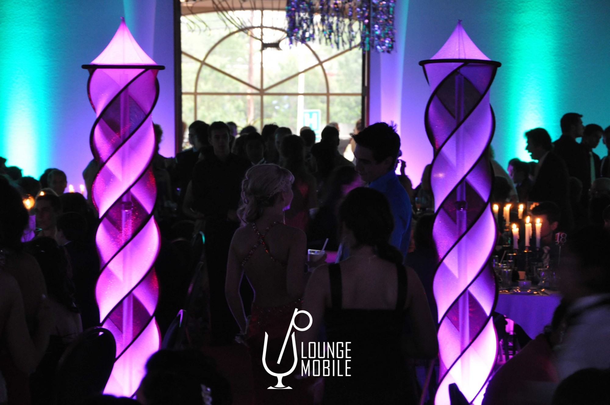 Magnifique colonne torsadée rouge et argent d'une hauteur de 7'. Cette colonne professionnelle s'installe à l'aide d'un poteau télescopique dissimulé à l'intérieur permettant la pleine extension du tissus sans aucun plis à l'aide des encrages élastiques fixés sur sa base autoportante au sol. Largeur de 12''. Nous suggérons l'ajout d'une lampe led ronde ou rectangle au besoin pour l'illuminer.