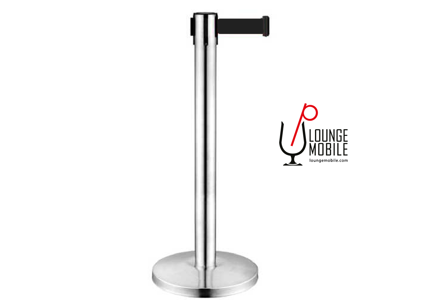 POTEAU DE FOULE CHROMÉ AVEC RUBAN RÉTRACTABLE NOIR