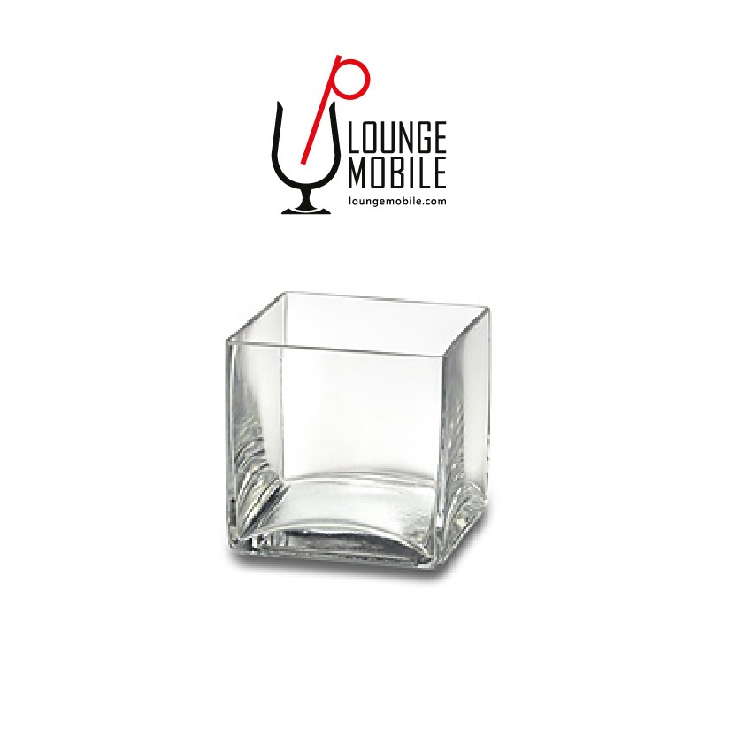 Petit vase carrée de 4'' de hauteur en verre pour centre de table. Trou de 4'' X 4''. Peut s'agencer de bulles, perles, fleurs et lumières en sus. Ils peuvent être recouvert de ruban aux couleurs thématiques (couleurs au choix). Des formats plus gros sont également disponibles.